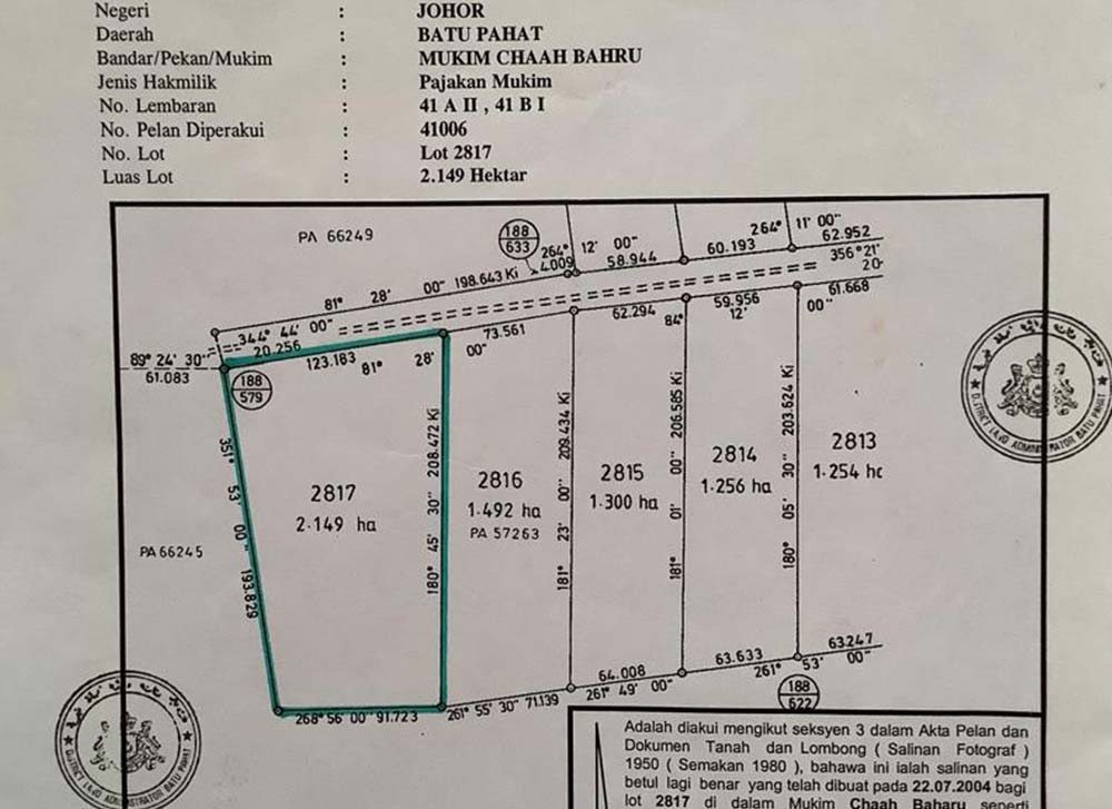 Berikut adalah jumlah caj yang dikenakan bagi kerja-kerja pengukuran Demarkasi dan Butiran di atas setiap lot.